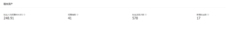 在粉丝资产模块我们可以清晰明了的看到观看直播粉丝的各种行为数据,分别有粉丝人均观看时长、观看指数、粉丝浏览次数、新增粉丝数。