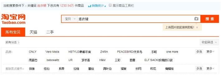 我们开始就说了,知己知彼百战百胜,怎么百战百胜呢?要做到知己知彼。其中知己就是先要充分了解自己的产品。同一个类目会有好多产品,每个产品都有自己的独特的属性,没有一件产品可以满足所有人群的需要。个体的差异化,对于同一类产生了不一样的需求。打个比方,如果说你是卖连衣裙。我们打开淘宝首页,我们搜连衣裙,我们会发现女装春装的宝贝数有1230.94万。