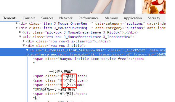 宝贝标题点击标题右键→审查元素