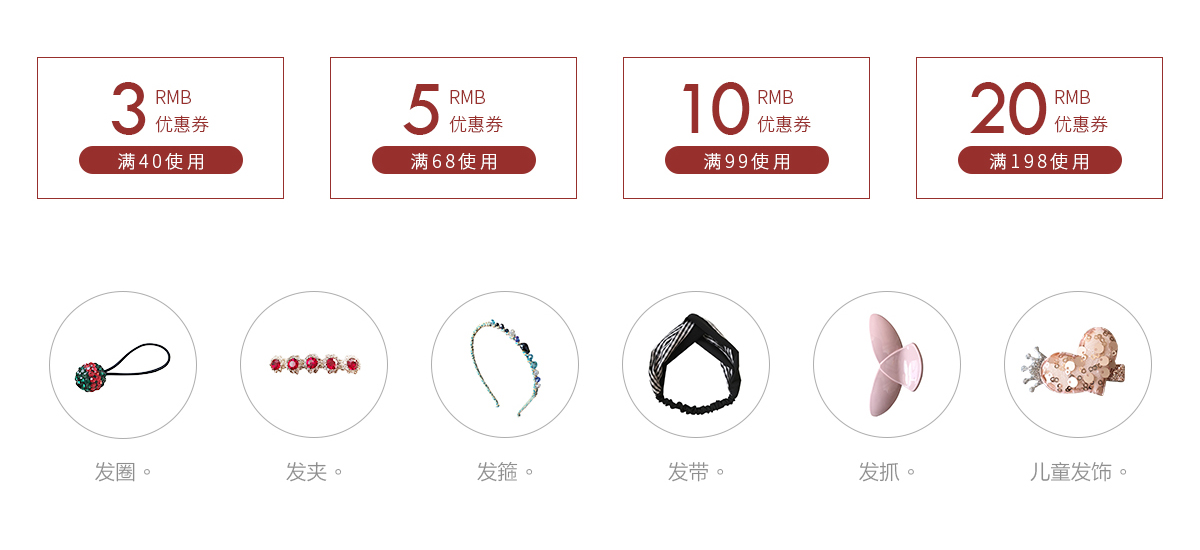 优惠券信息用了砖红色,因为优惠信息就是要提醒买家,也是需要买家领取,所以可以显眼一点,但是不要破坏整个页面的风格;